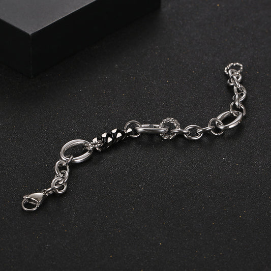 Trendy Polished Punk Titanium Steel Buckle Chain Men's Bracelet