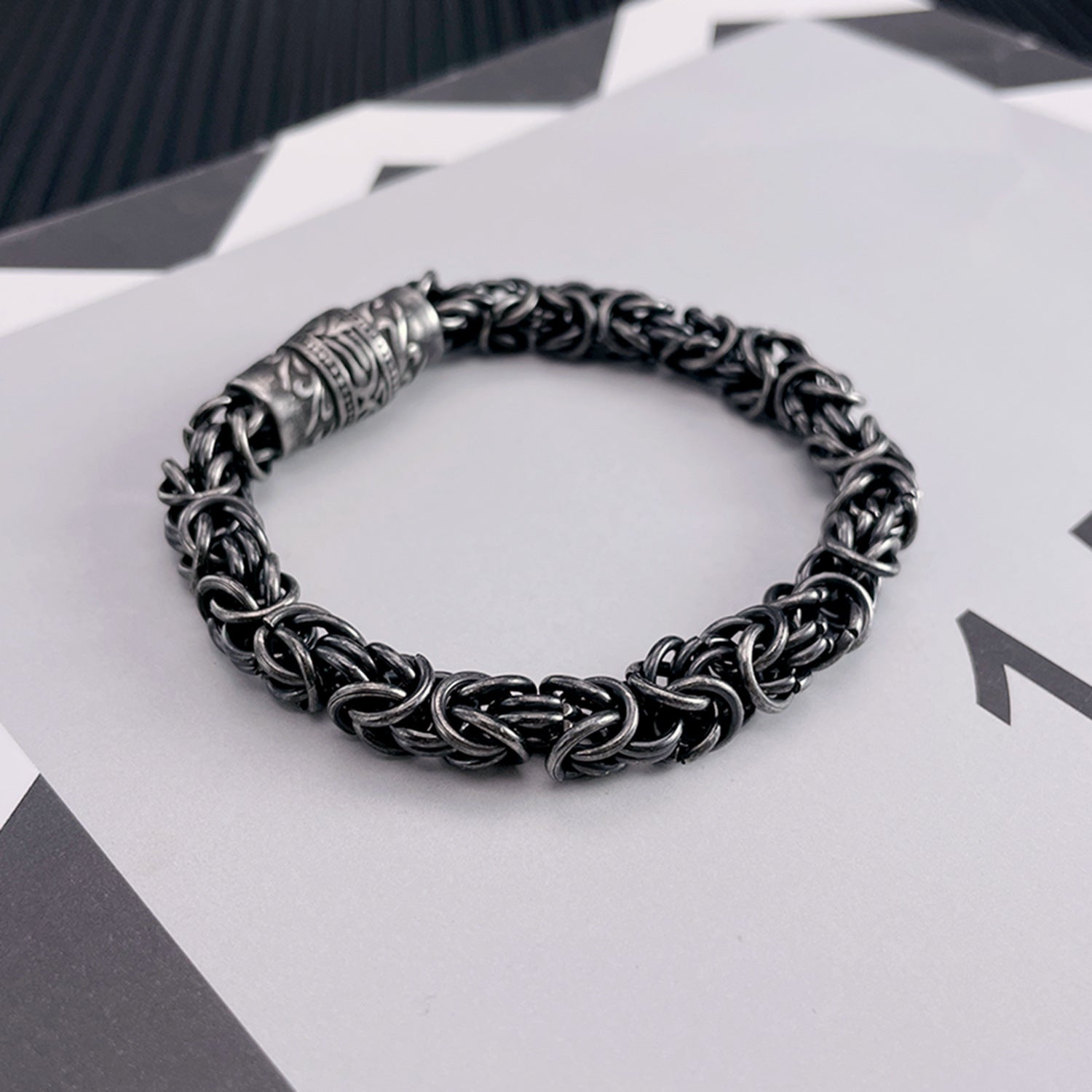 925 Silver Distressed Hip Hop Magnetic Bracelet