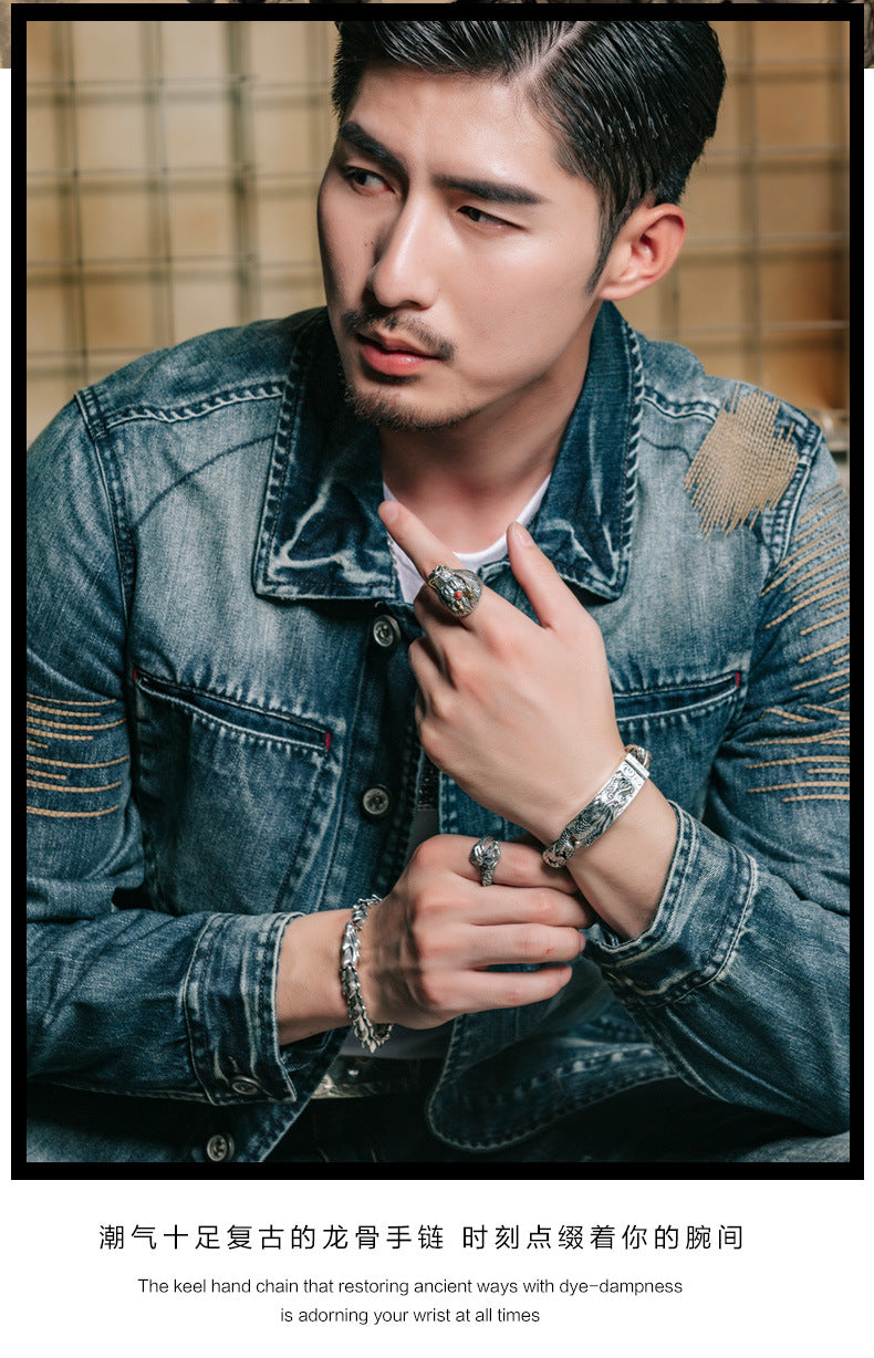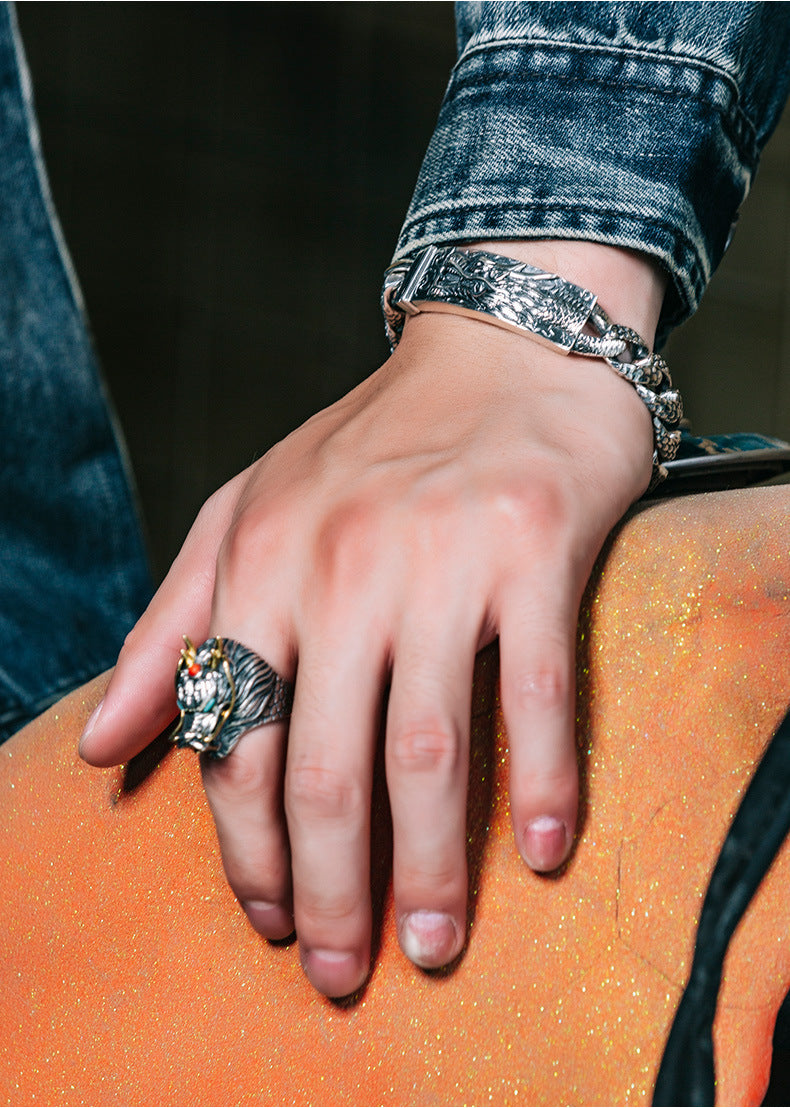 925 Silver European and American double ancient dragon bracelet